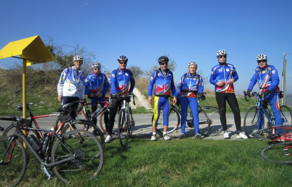 18 routiers avec le photographe et 20 avec ceux qui sont arrivés après la photo ! et pendant ce temps, ou en fait un peu plus tard, 7 « tranquillous » ont fait une boucle raisonnable d’une soixantaine de km avec une parité presque respectée (3 femmes/4hommes)