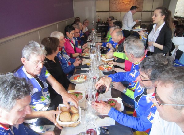 14 mai : 21 routiers au départ ce matin (les retardataires ne sont pas sur la photo), et au moins un VTTiste et un jeune routier