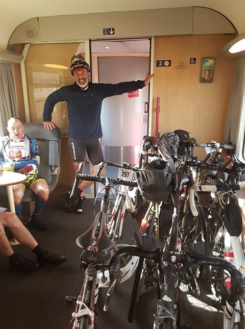 Ravitaillement, pas vraiment au soleil, mais il ne pleut pas…. cependant pour la route de retour le train s’est avéré moins humide !