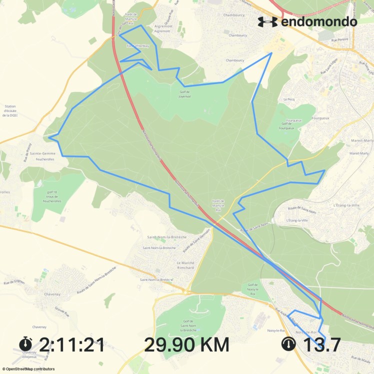 Au final : 29,9 kms en 2h à 13,7 km/h