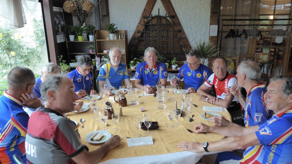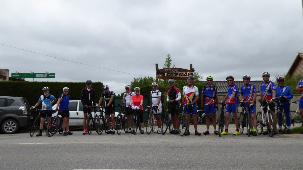 Le groupe à la sortie de chez Anje (toujours très correct). Merci à Hervé pour l’apéro (Changement de pneus. Tous les prétextes sont bons ….)