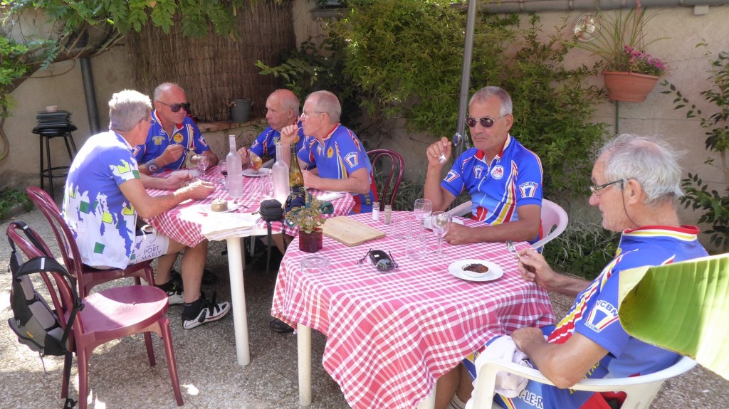 En terrasse au Bouquet. Merci à Christian Nivoix pour l’apéro (72 ans).
