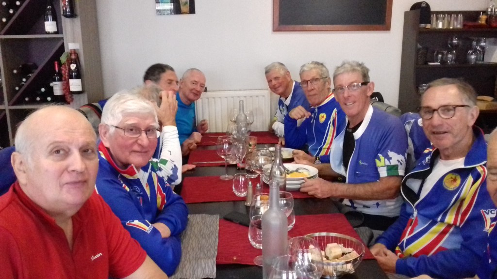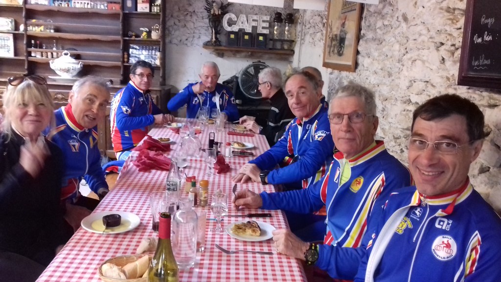- 5 avril : 11 cyclistes pour un jeudi presque sec mais un peu frais. Déjeuner à la Grâce de Dieu aux Essarts le Roi. Merci à Jean Pierre Marion pour l’apéro (66 ans) et à Jean Pierre Tempez pour l’organisation