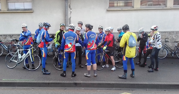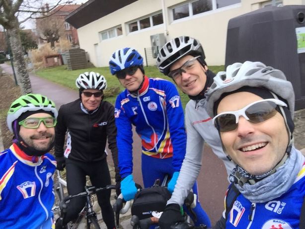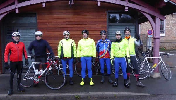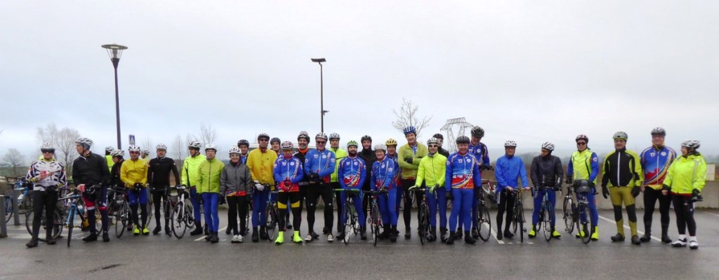 - 4 février : il fait froid (entre -0 et +0°C d’après certains sites météo !), un bon vent de NE, qui n’arrange rien, la pluie, voire la neige, menace (mais elle ne fera que menacer), rien ne décourage les valeureux routiers du VCBN !