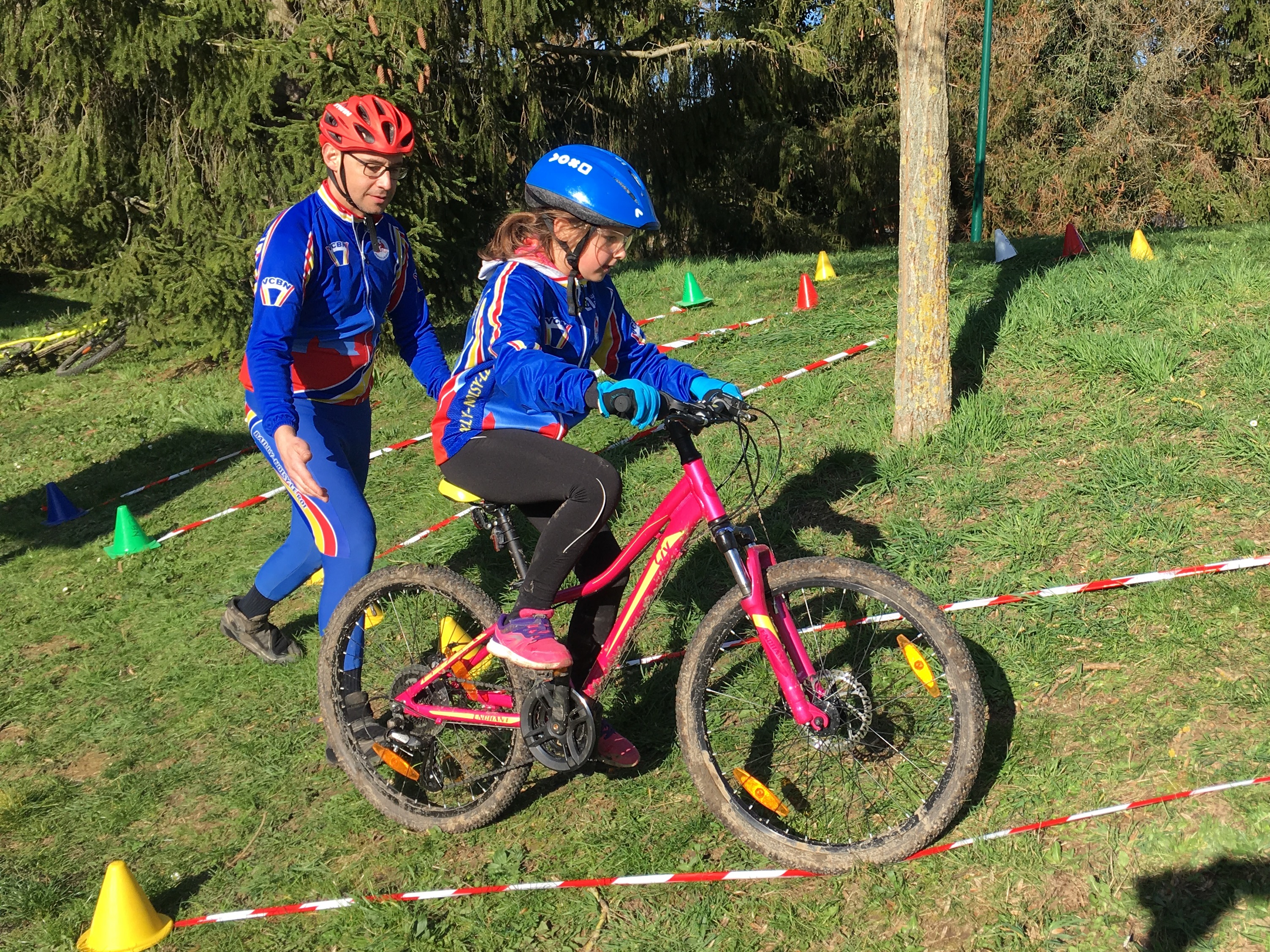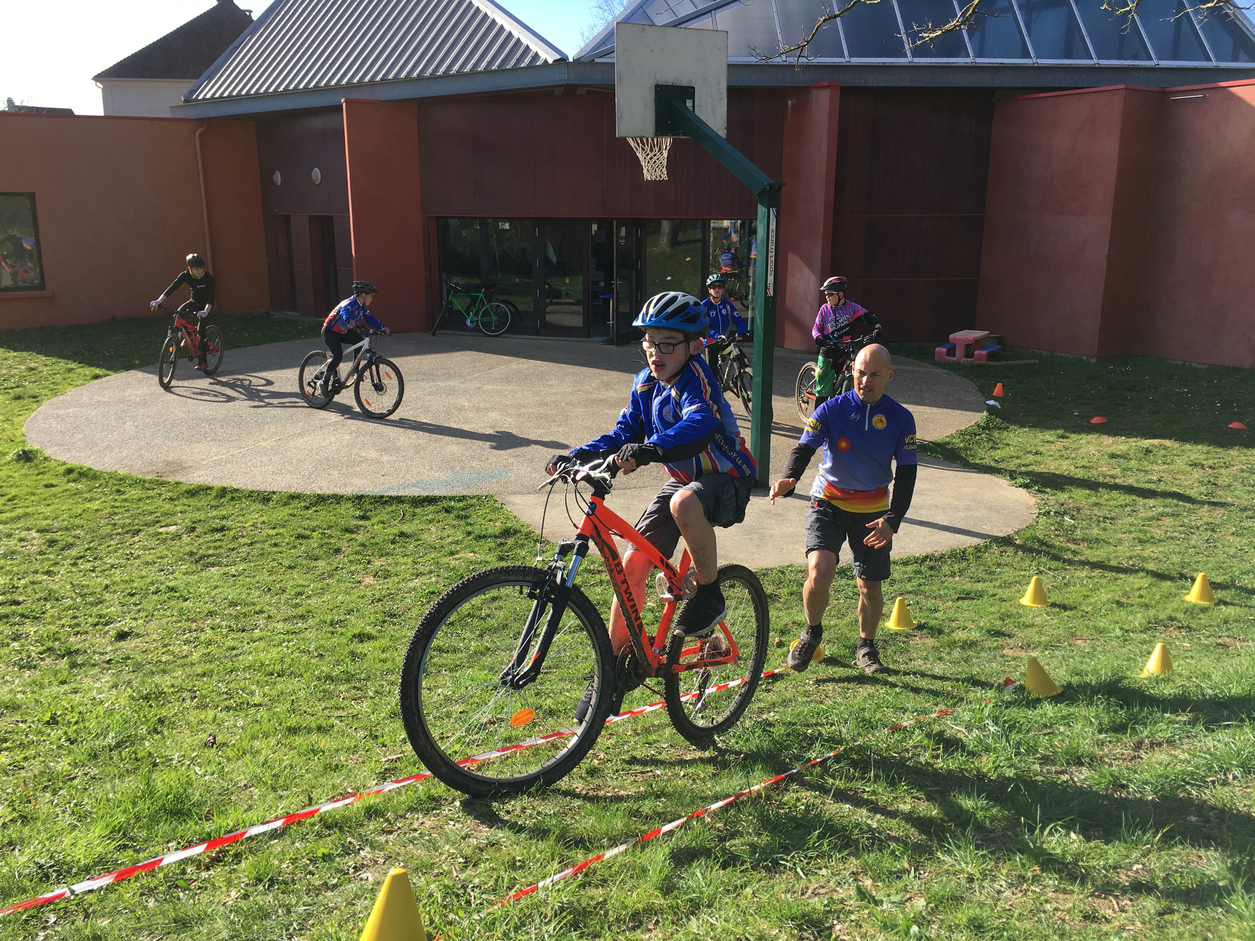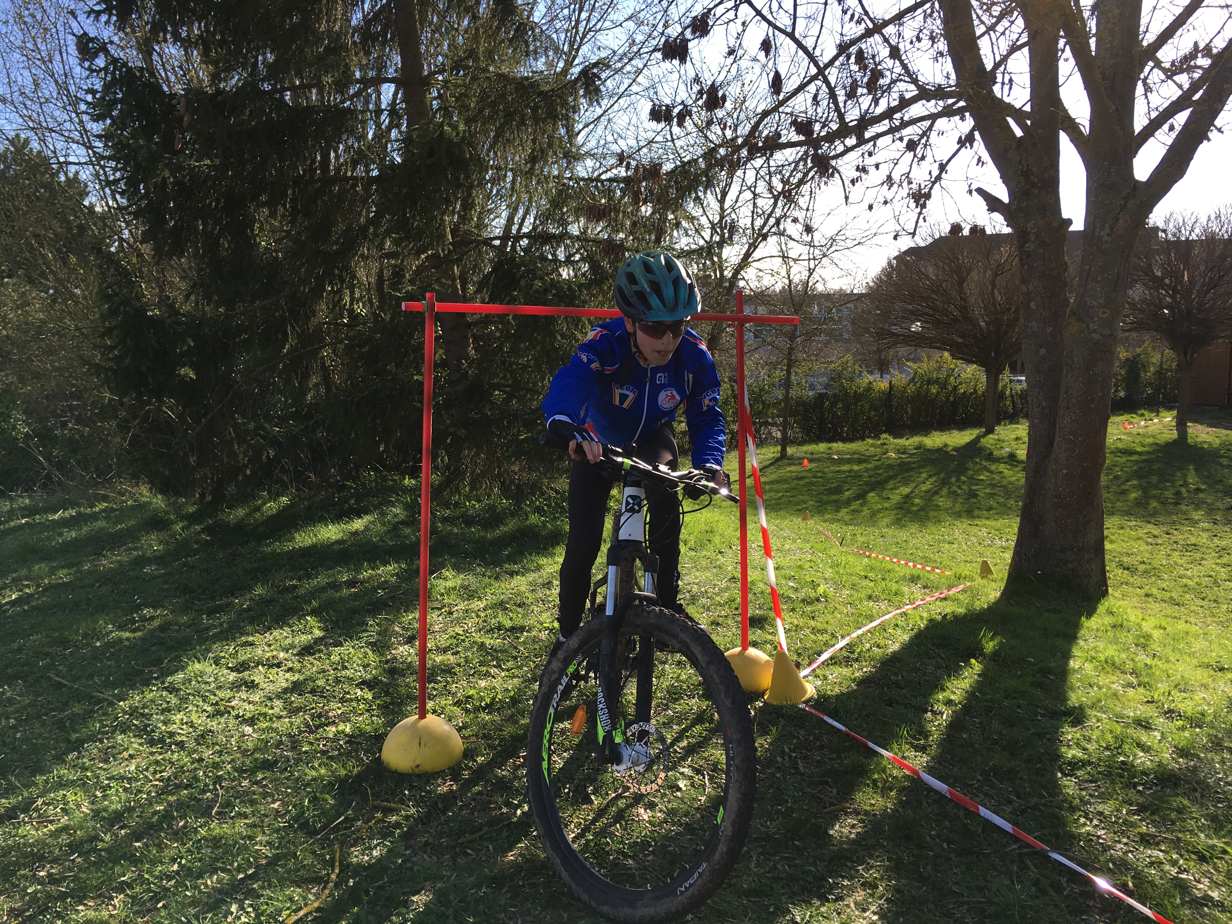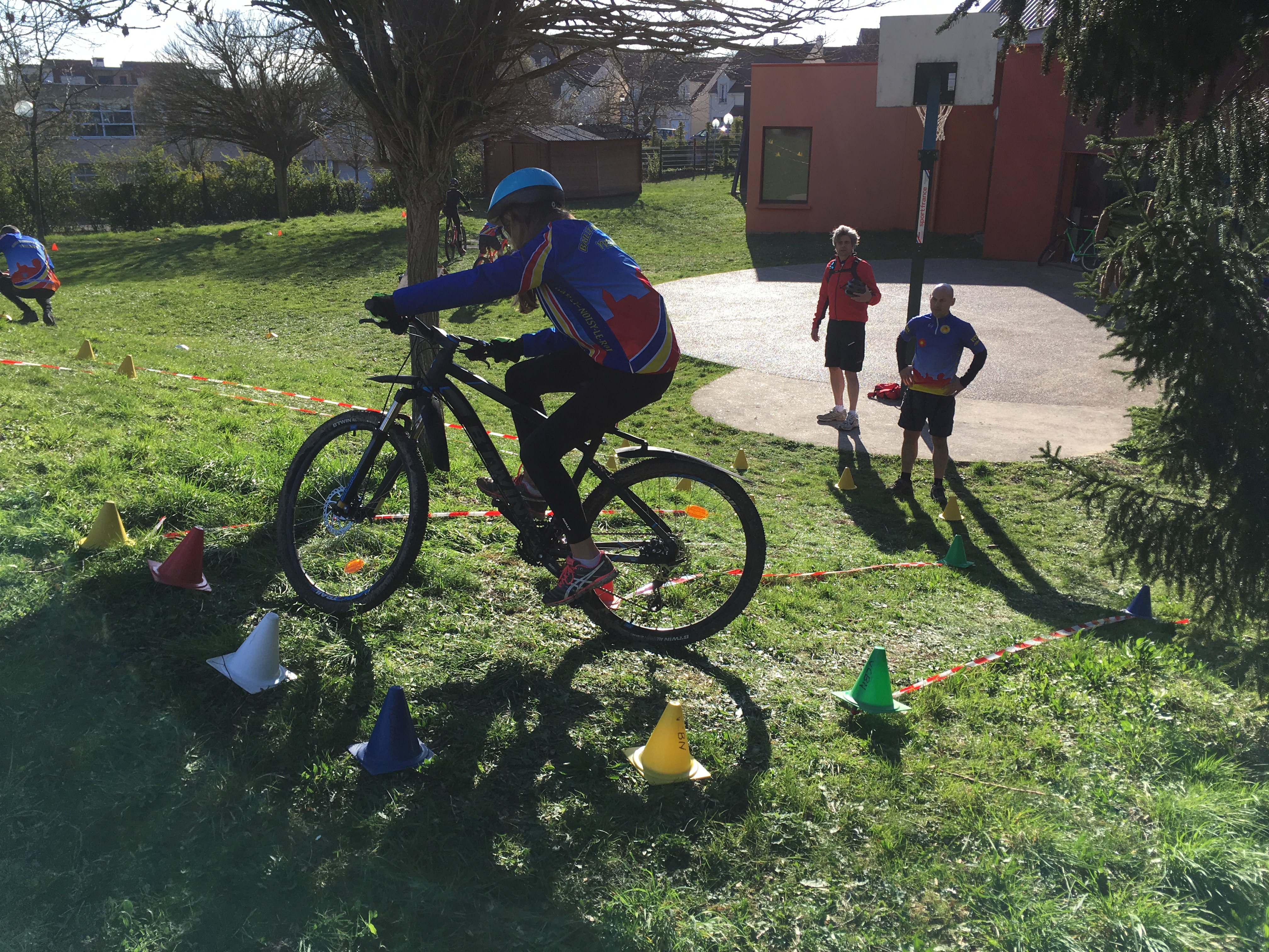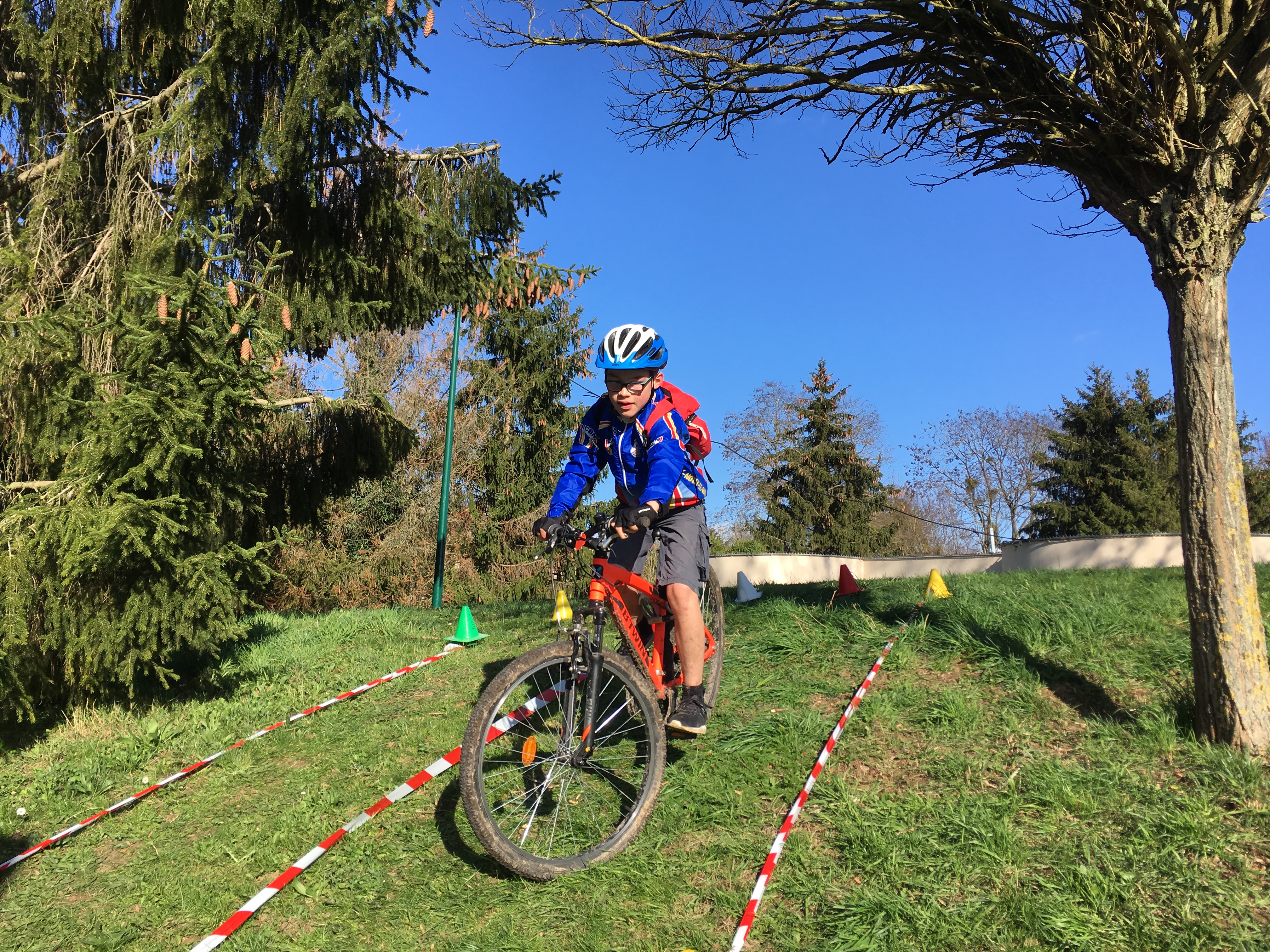 Le critérium départemental approchant à grand pas, il est temps de préparer nos jeunes aux épreuves qui les attendent. Avant les vacances, une séance d’orientation en forêt avec carte leur avait montré une première facette des ateliers du critérium. Aujourd’hui, pour les plus jeunes qui ne connaissent pas, la sortie en forêt se fait en suivant le rando-guide. Une fois les groupes revenus, nos jeunes peuvent se mesurer sur un parcours de maniabilité, créé devant le local, dans le terrain vallonné de la Maison des Associations.