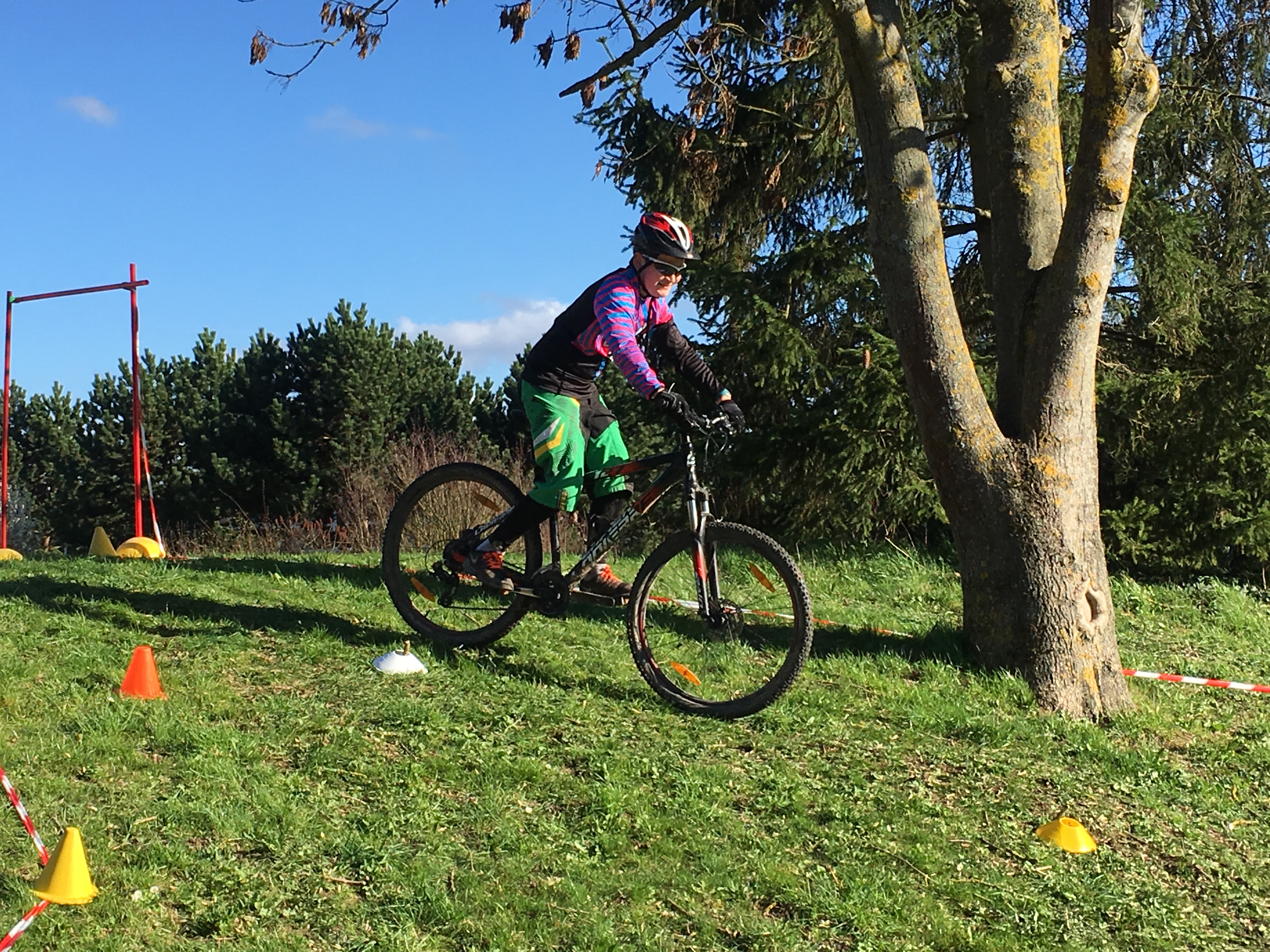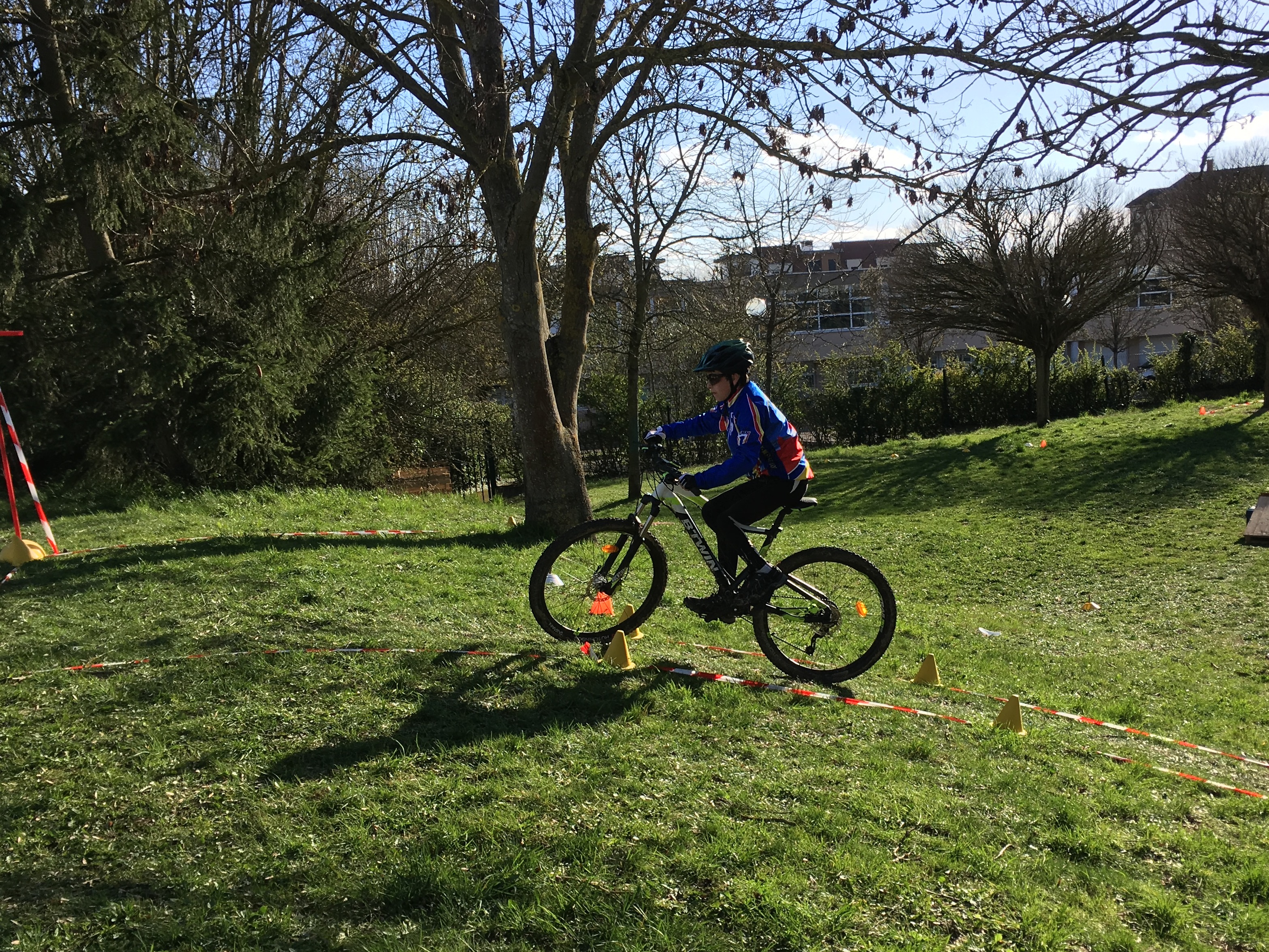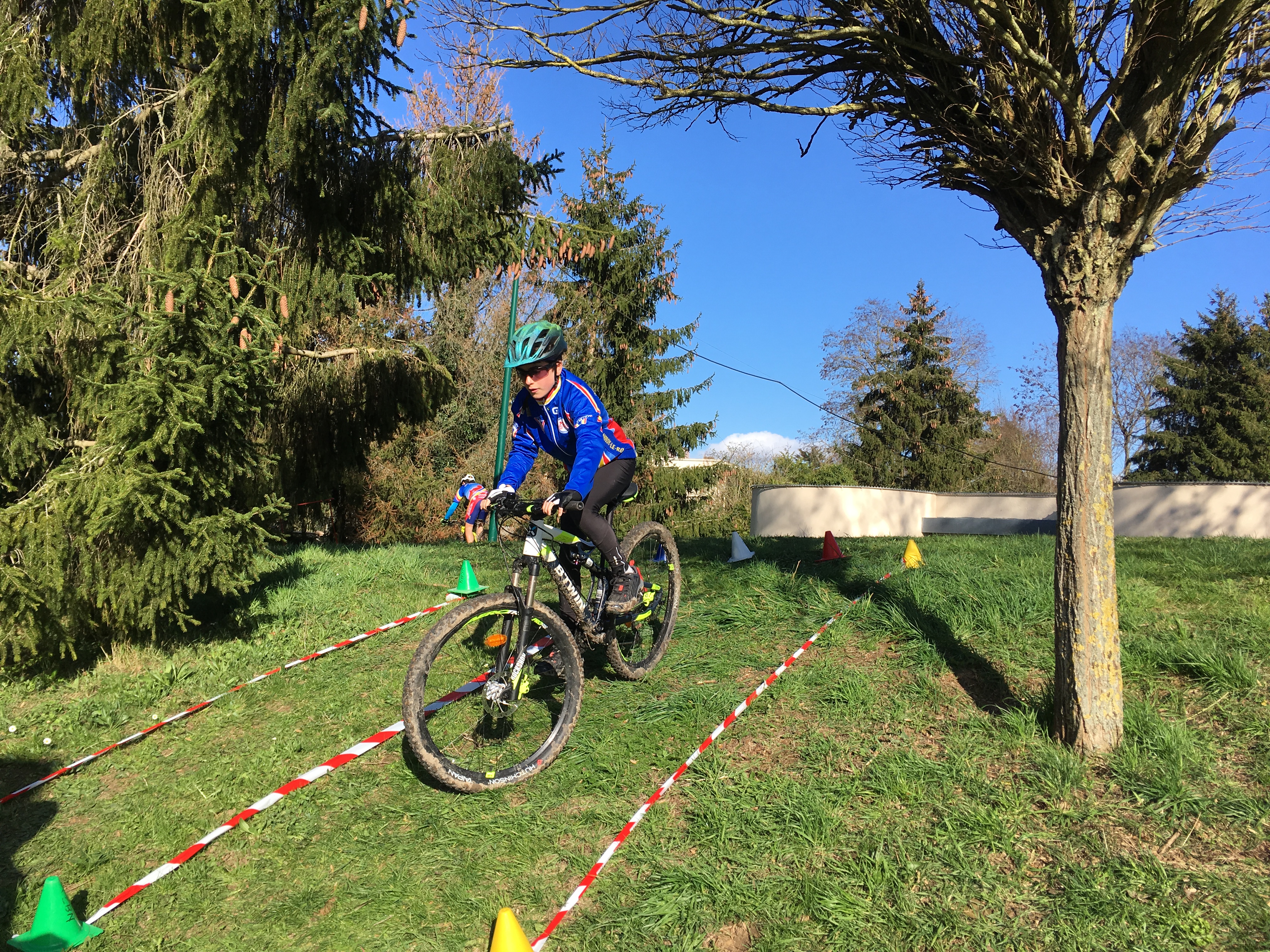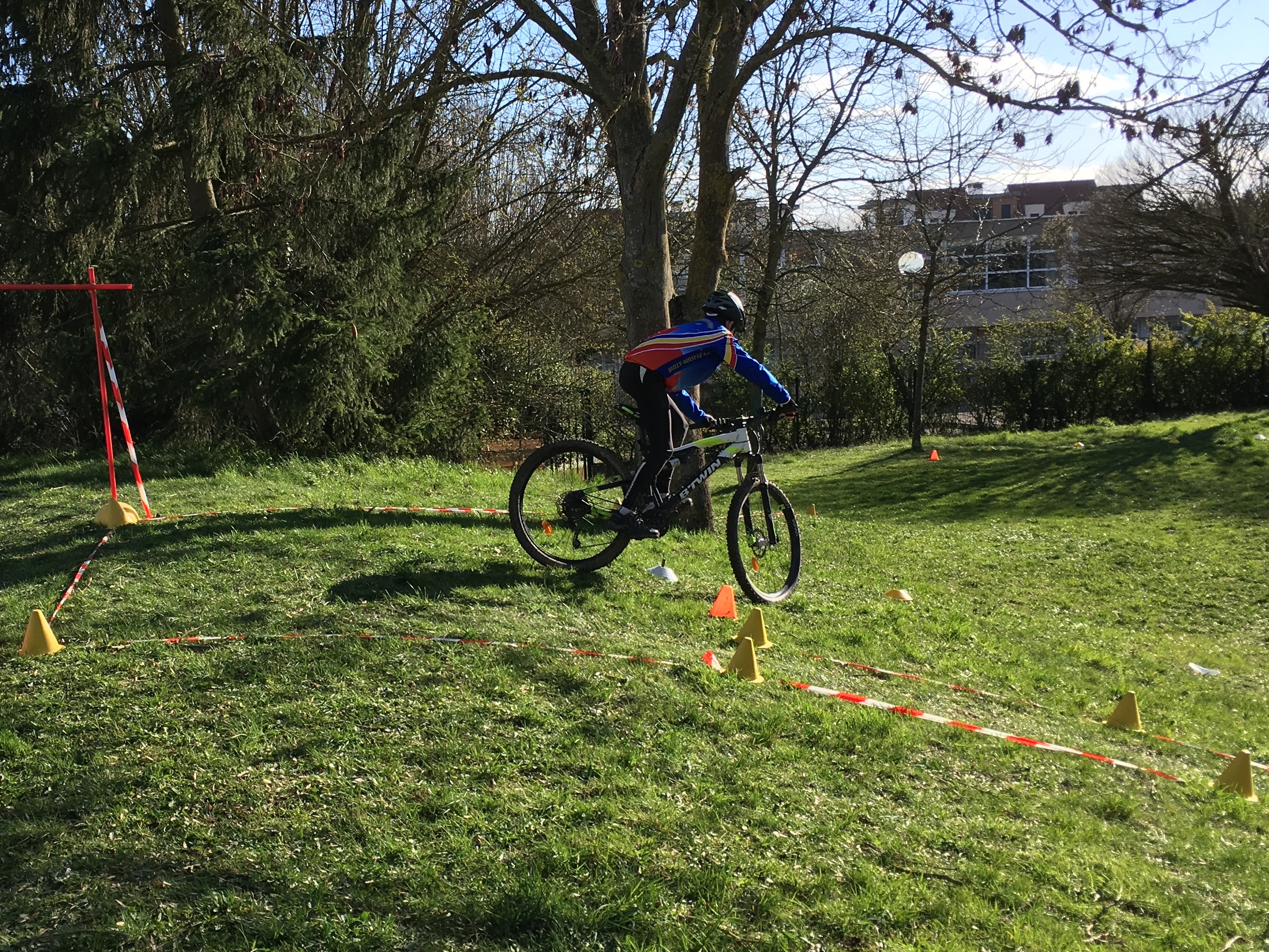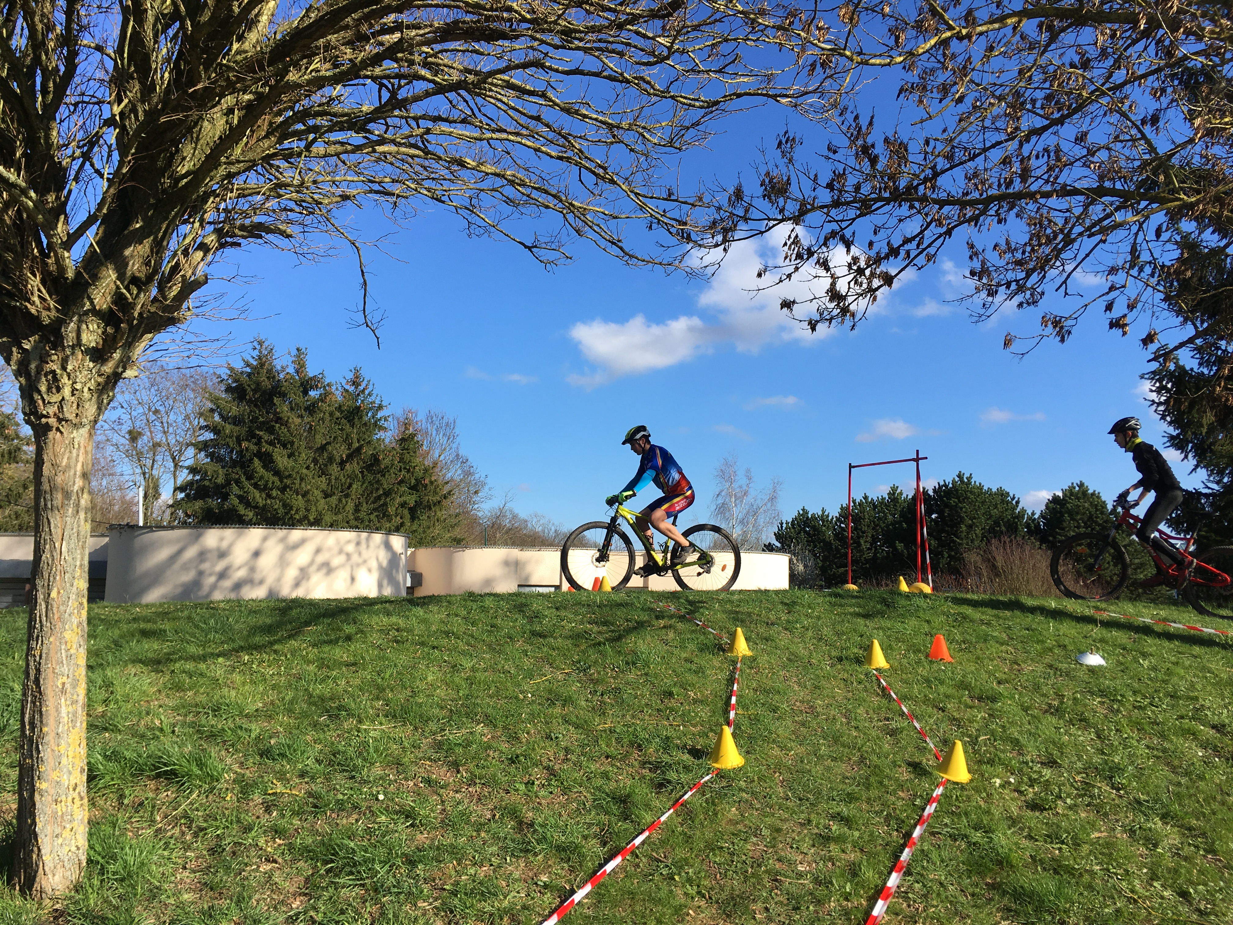 Le critérium départemental approchant à grand pas, il est temps de préparer nos jeunes aux épreuves qui les attendent. Avant les vacances, une séance d’orientation en forêt avec carte leur avait montré une première facette des ateliers du critérium. Aujourd’hui, pour les plus jeunes qui ne connaissent pas, la sortie en forêt se fait en suivant le rando-guide. Une fois les groupes revenus, nos jeunes peuvent se mesurer sur un parcours de maniabilité, créé devant le local, dans le terrain vallonné de la Maison des Associations.
