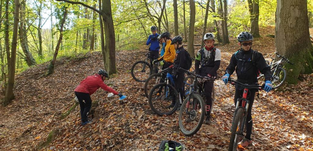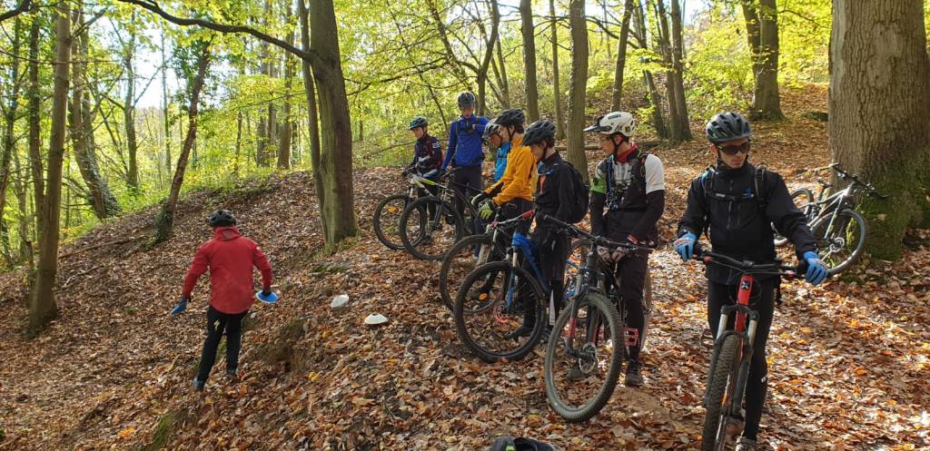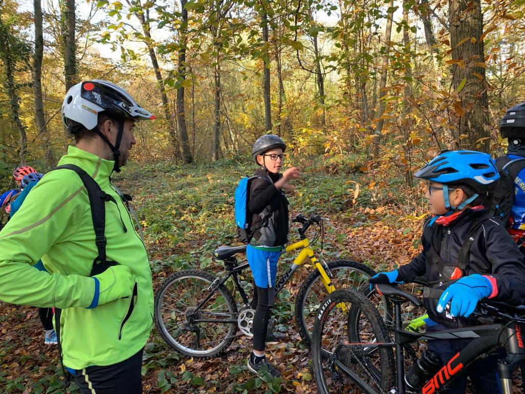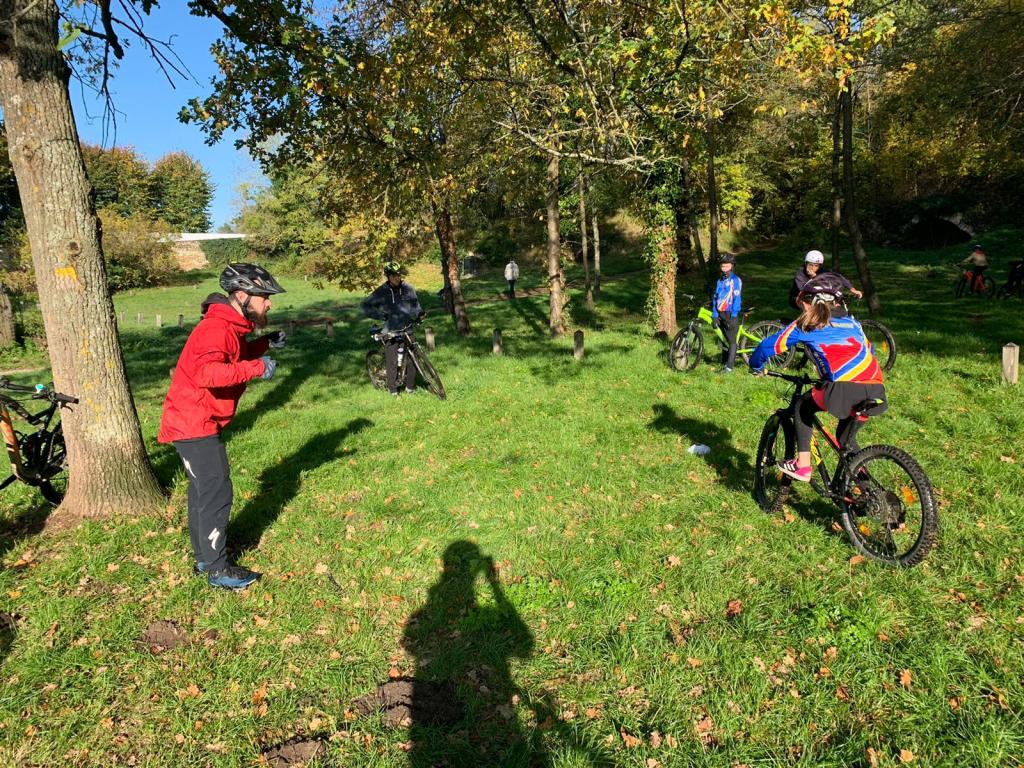 Pierre a pris le groupe des plus jeunes le matin pour leur expliquer et leur montrer les bases de la maniabilité à VTT : position sur le vélo, freinage, pédalé-freiné, parcours de maniabilité etc. Accompagné de quelques encadrants du club, la matinée s’est déroulée du côté de la porte des Gondi, à réaliser différents exercices sous l’œil expert de notre moniteur qui sait si bien rectifier les erreurs et expliquer les bonnes pratiques.