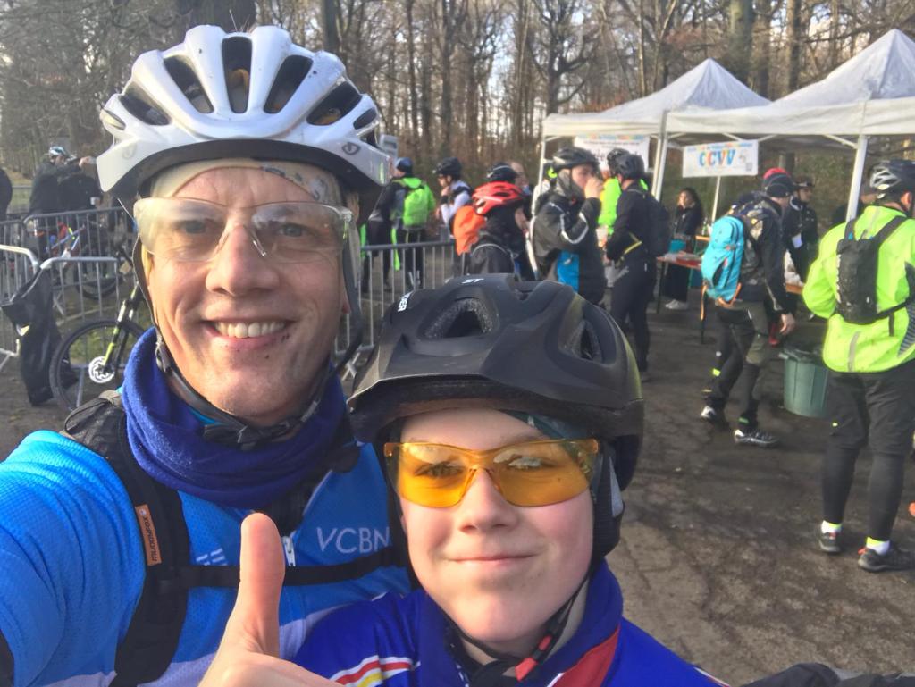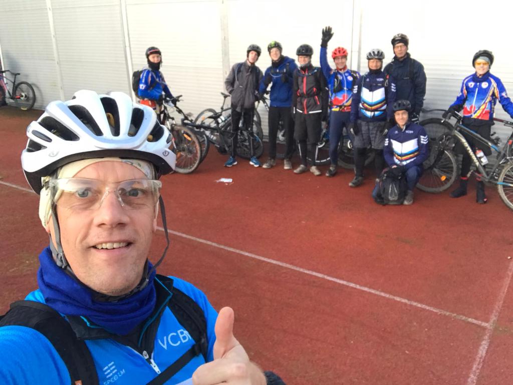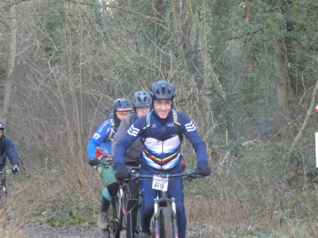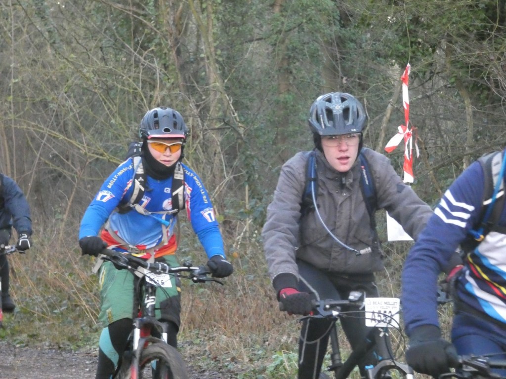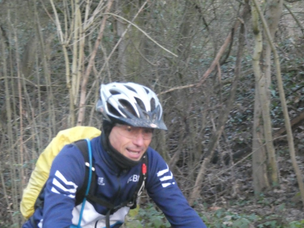 Nous partons avec 5 jeunes courageux, Simon, Gabriel L., Valentin, Oliver et Thibault, encadrés par 5, non moins courageux, adultes ! La première partie du parcours est assez roulante et pas trop boueuse, mais le froid est bien piquant en forêt. Tout se passe bien, malgré quelques petites chutes sans gravité que l’on mettra sur le compte du terrain humide … Puis les descentes et les rudes montées s’enchaînent sans nous laisser de répits. Parfois il faut mettre pied à terre, pour reprendre son souffle ou pour terminer la côte.
