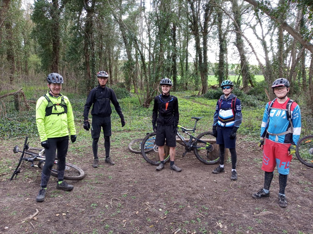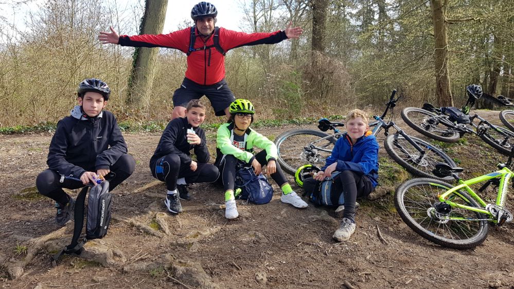 La bande des « moyens », Mathéo, Hugo, Robin et Malo est encadrée par Patrick, Olivier et Fabien. La sortie se déroule bien, sans chute, ni crevaison ou casse. Ils enchaînent montés et descentes du bois de Rocquencourt jusqu’à Sainte Gemme pour un total de 450 m de dénivelé positif.