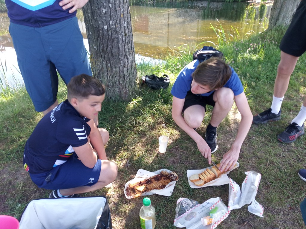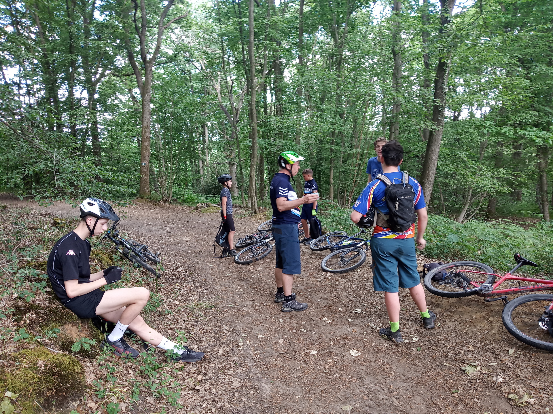 On repart pour redescendre vers Chevreuse et, forcément, il faut remonter une nouvelle fois pour aller vers Dampierre en Yvelines. Une fois passé le petit single joueur au dessus de Saint Forget, nous piquons vers le nord à travers champs et villages pour retourner vers notre point de départ. Dans la dernière section, Malo casse deux fois de suite sa chaîne, ce qui plombe un peu notre horaire de retour et nous transforme en proie pour les moustiques le temps de la réparation. Une fois arrivés, c’est un goûter qui attend tous les vététistes : boissons fraîches et gâteaux pour achever cette sortie réussie !