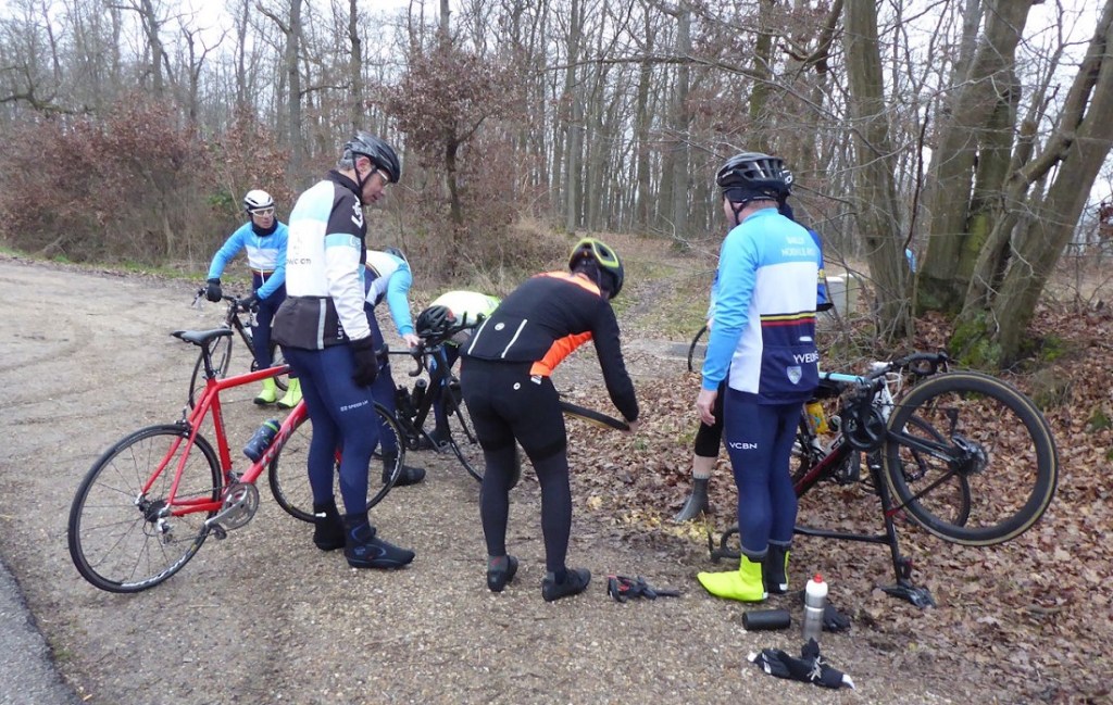 9 janvier : prudence face au Covid, 4 routiers ont roulé en 3 groupes ! et surtout affronté le froid, la pluie, et les crevaisons (2 quand même !)