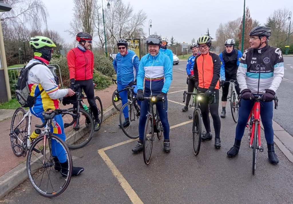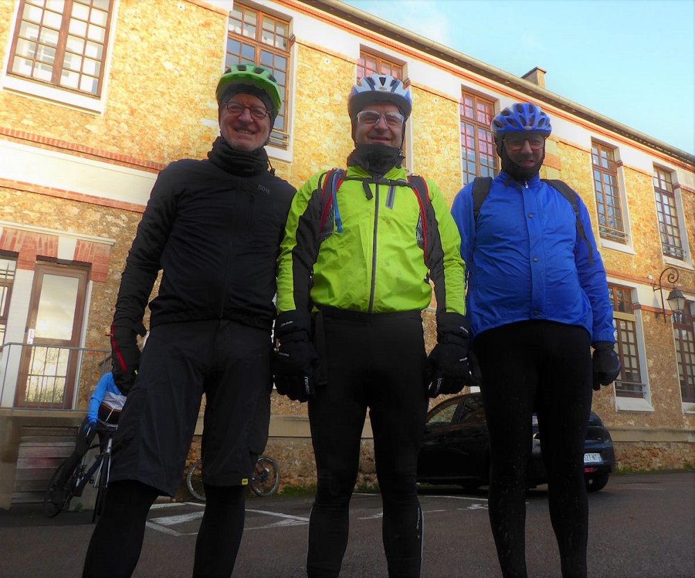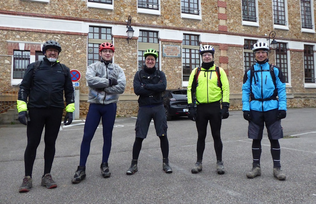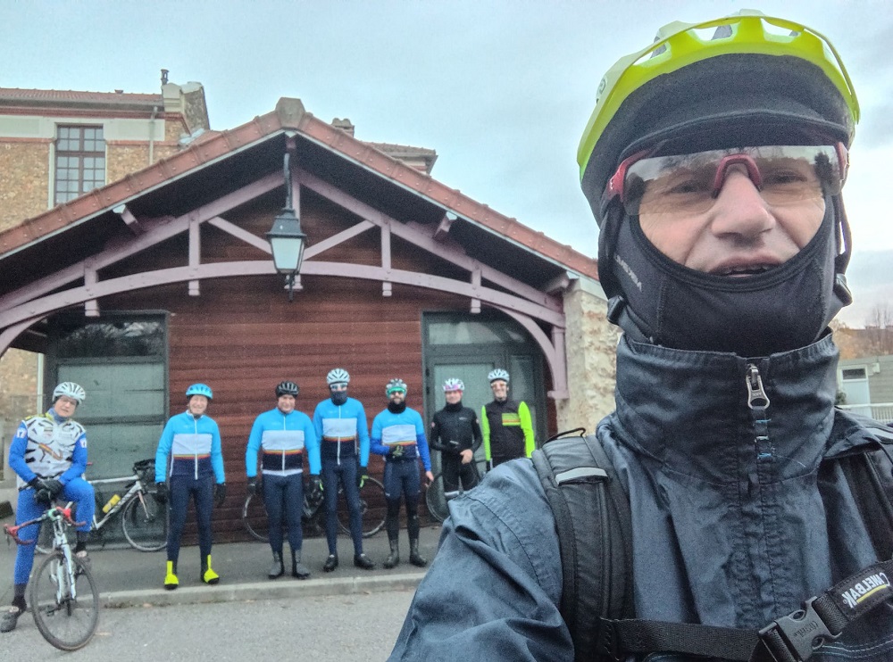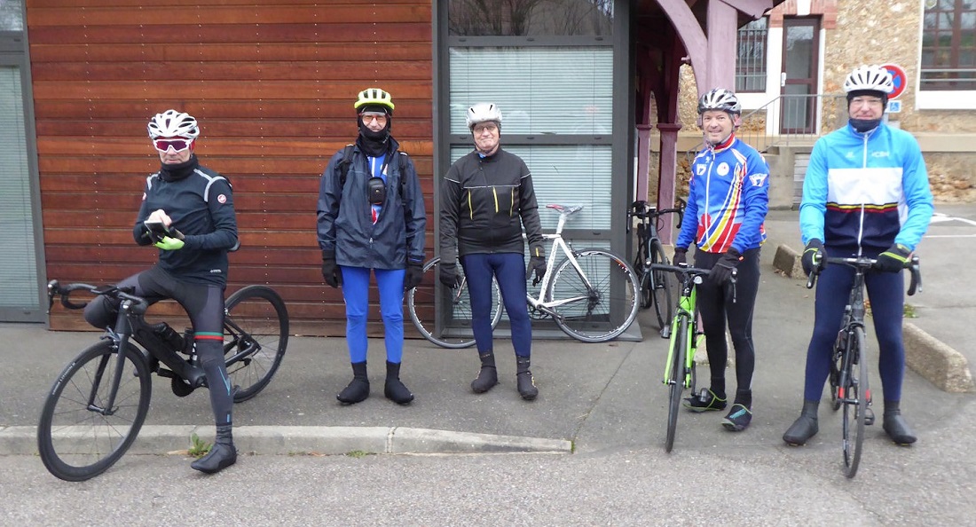 18 décembre, toujours pas officiellement l’hiver, mais -4°C, on s’y croirait, ce qui n’a pas empêché 5 valeureux routiers, dont 4 sur la photo, de prendre le départ !