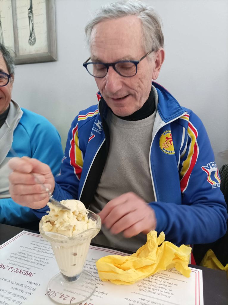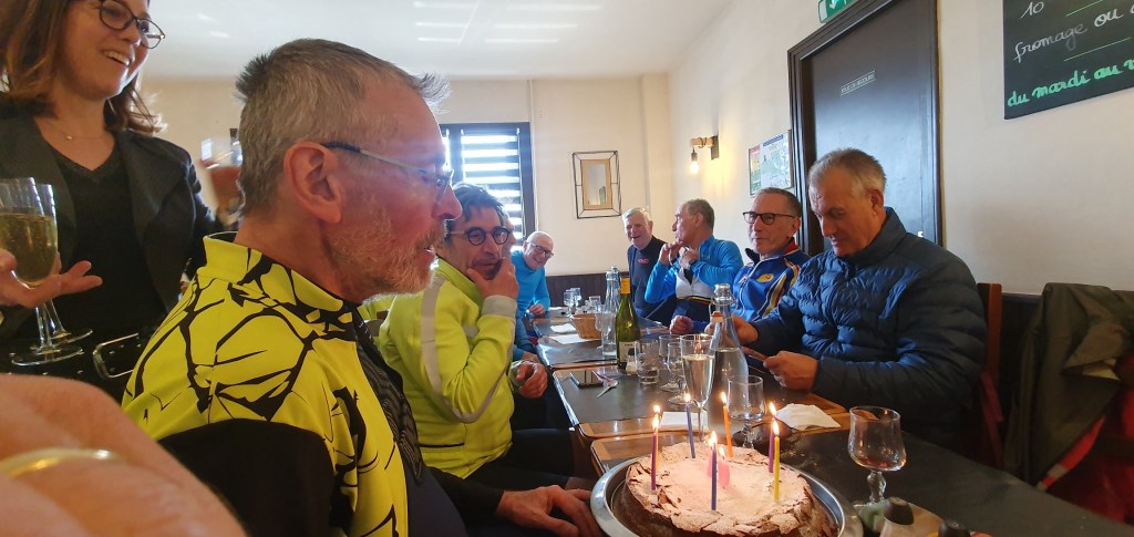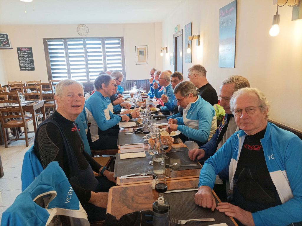 28 février : Toujours une belle journée avec un bon vent d’est très frais. Pause déjeuner au Clair de lune à Orvilliers pour les 8 martistes plus Bernard venu nous rejoindre en voiture. Merci à Bruno O. pour l’apéro (65 ans).