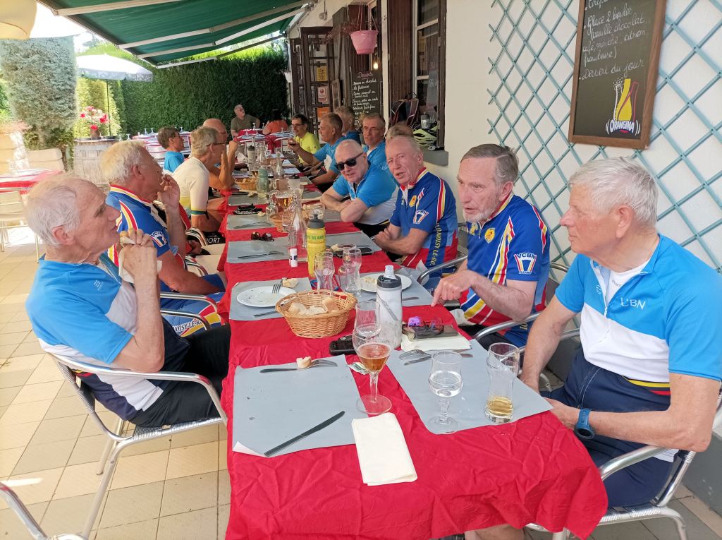 8 août : 5 martistes, belle journée pour vélo et déjeuner à l’Harmonie au Mesnil St Denis (toujours bien mais service un peu long)
