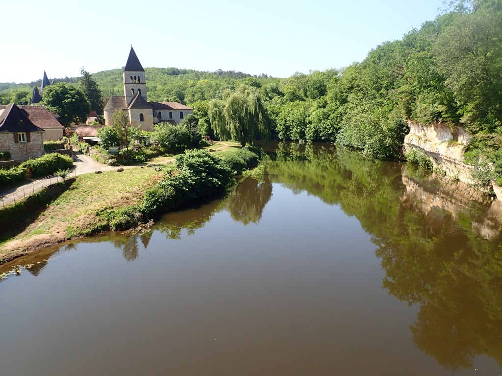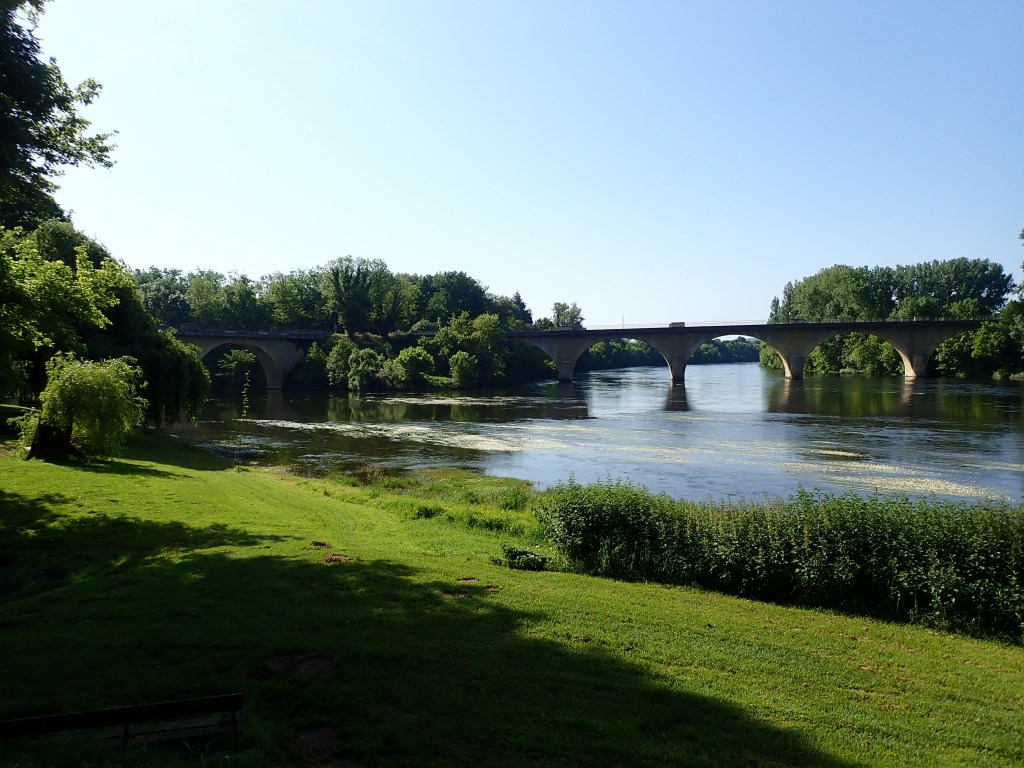 Dimanche confluence de la Vézère et de la Dordogne, pause pique nique sur la Place à Lalinde au km 60