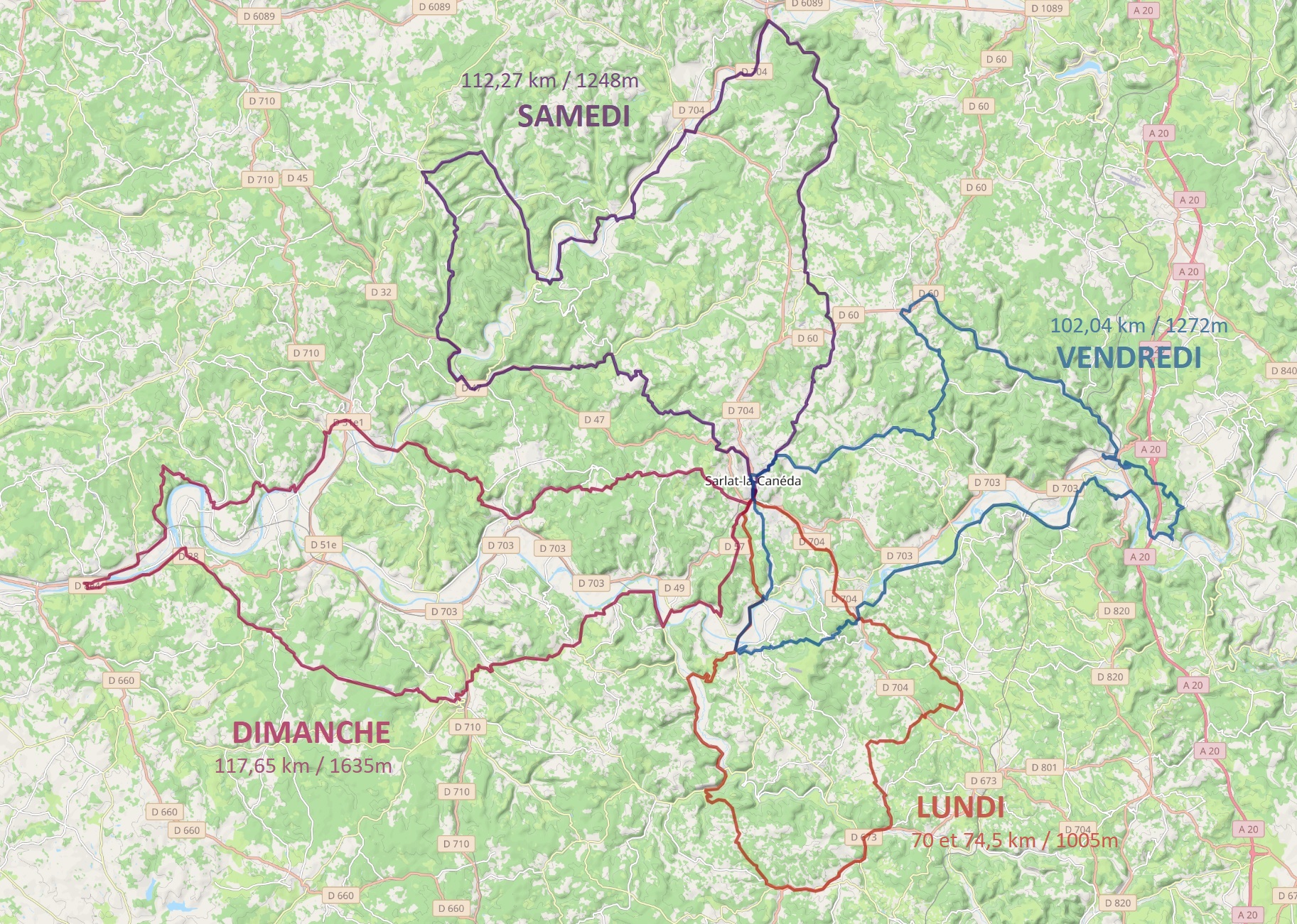 Participants route sur ces 4 parcours: vendredi (11), samedi (10), dimanche (9), lundi (9)
