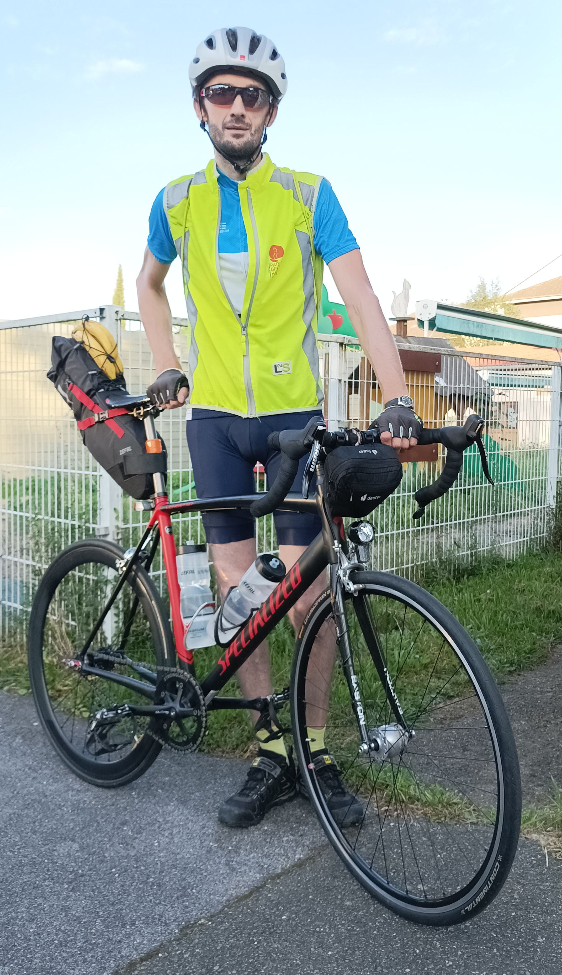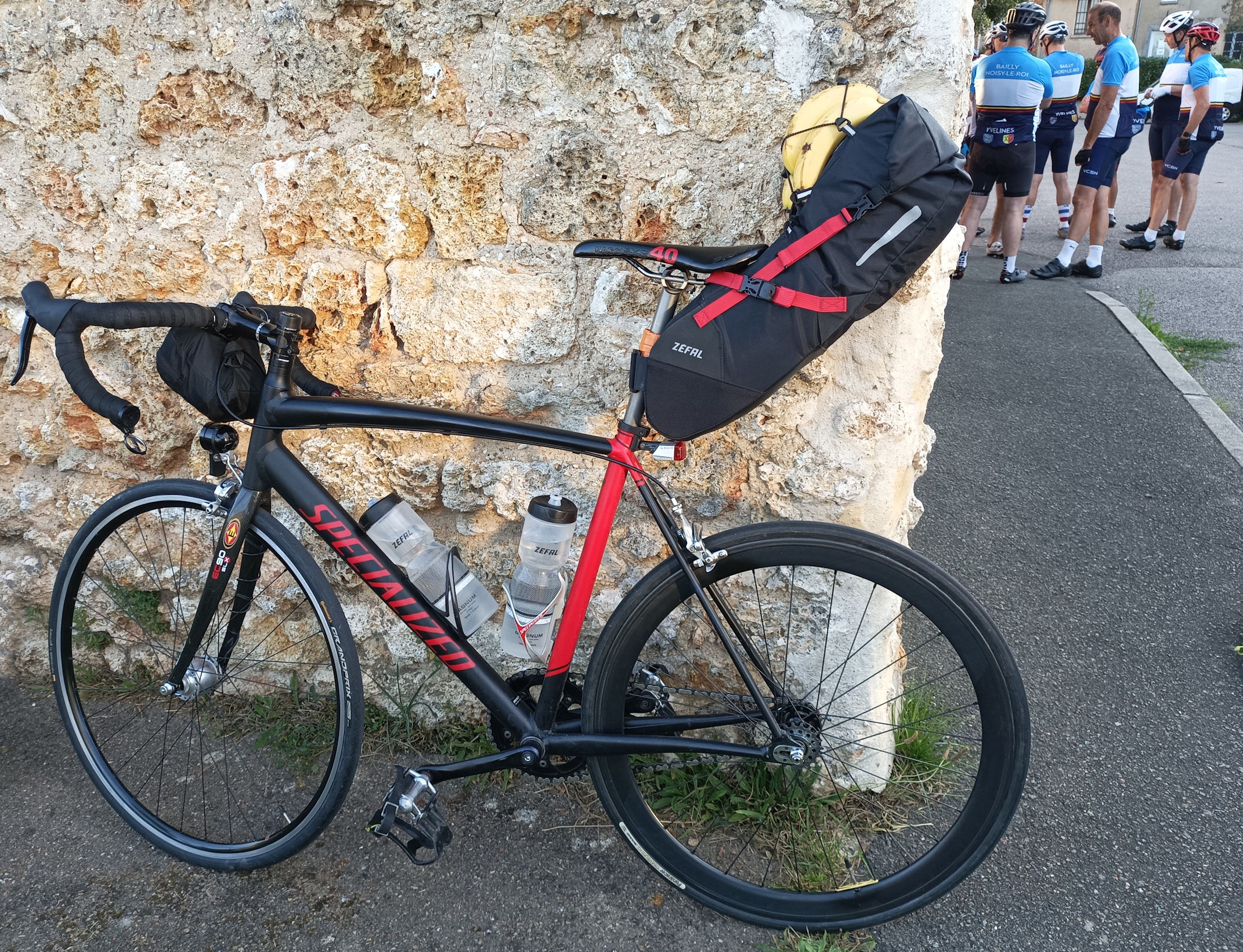 un des partants du groupe 1/2 a continué à partir d’Houdan sur les traces du Paris Brest Paris avec en destination Fougères sur un vélo à observer de près (analogue piste, mono plateau, mono pignon fixe, adapté route avec freins et feux)