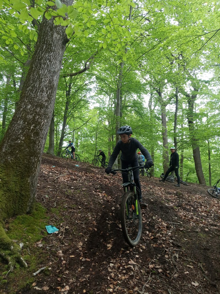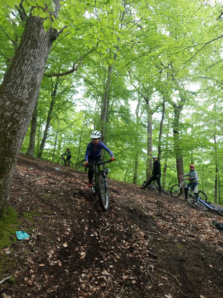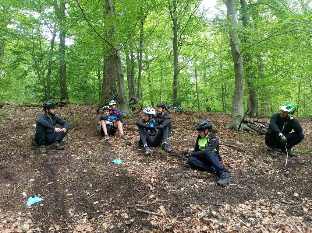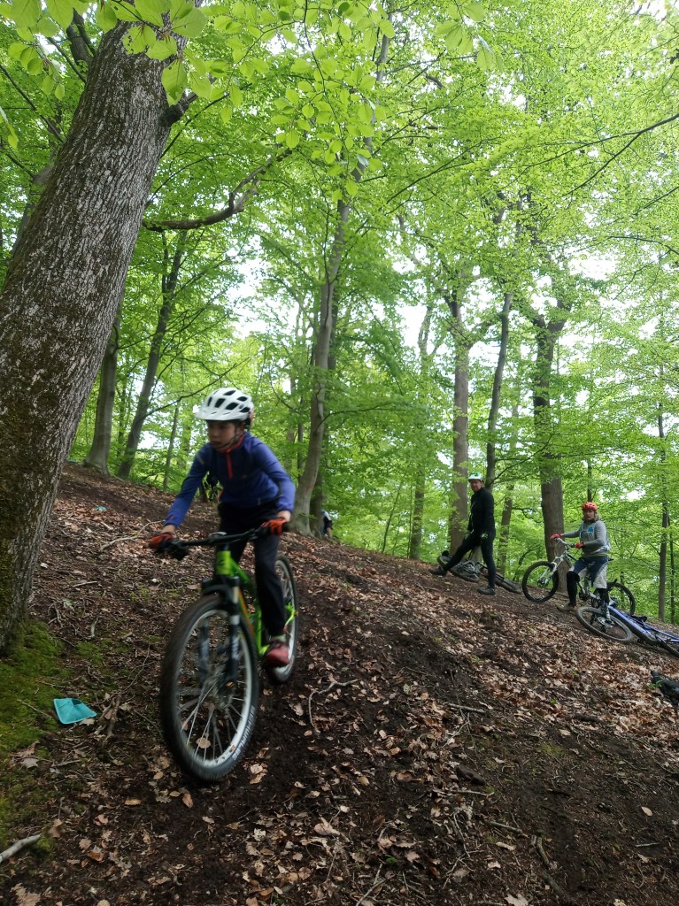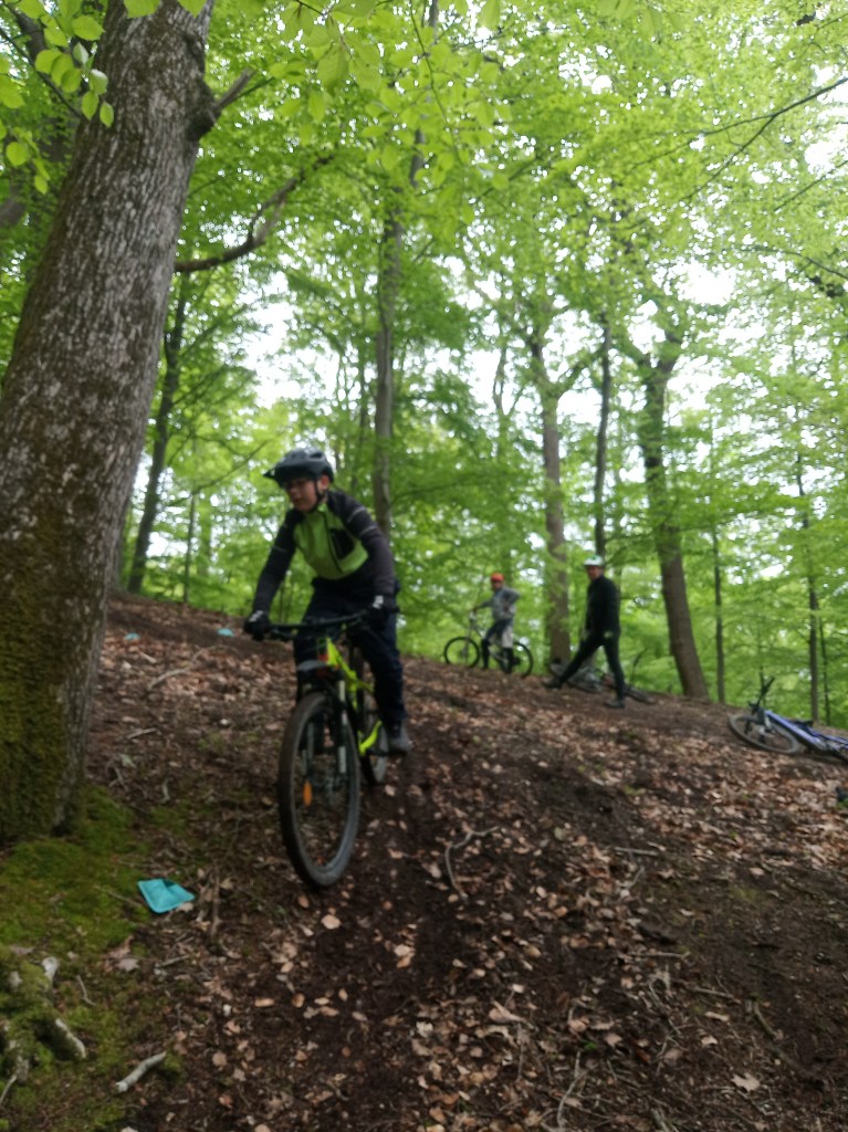 Le matin, pendant 3 heures, les adultes se sont rafraichis la mémoire sur les bonnes pratiques à VTT sous l’œil attentif et les conseils de Pierre. Les ateliers ont mis à rude épreuve nos mauvaises habitudes et nous ont poussés à nous améliorer dans diverses situations délicates (descente, maitrise du freinage, virages serrés, montés compliquées etc.)