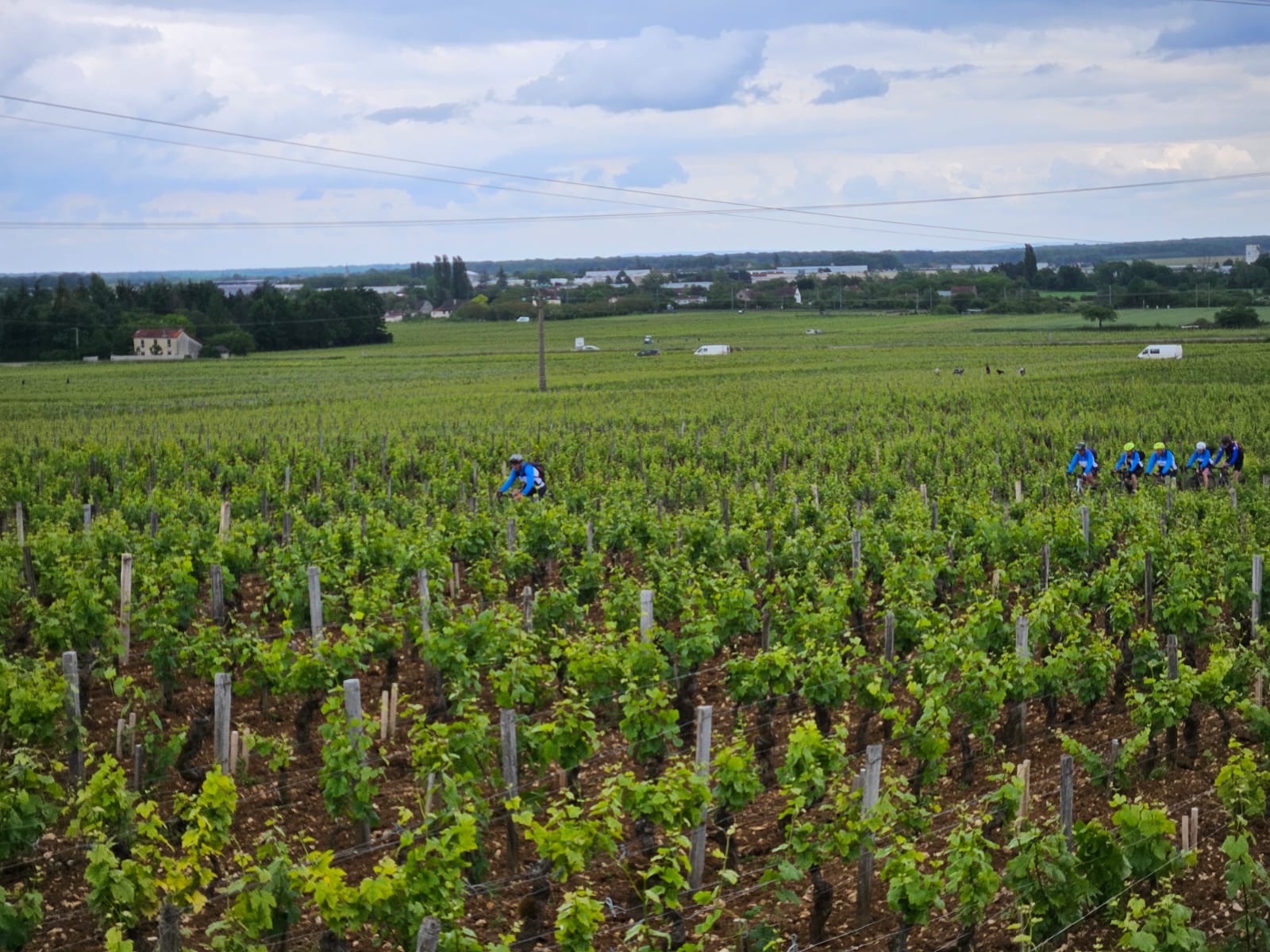 Du vendredi 24 au Lundi 27 Mai, méga déportée à Meursault (Côte d’Or), des vignes et des champs de céréales sous un ciel mitigé distribuant des pluies légères et éparses. Cette région est riche en sites historiques, en spécialités gastronomiques, en appellations viticoles … sans oublier ses routes, ses chemins et son relief fort prisés des cyclistes.
