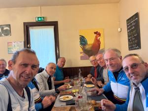 Mardi 1 avril : Très belle journée avec une bise sensible. Répartition en 2 groupes et 2 restaurants au Mesnil St Denis (16 chez l’Harmonie et 5 chez le Panache Blanc). Merci à Olivier D. (anniversaire et début retraite).