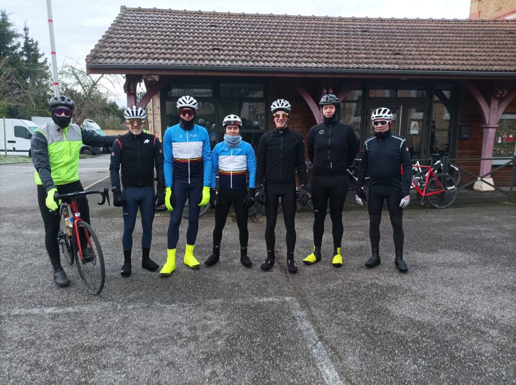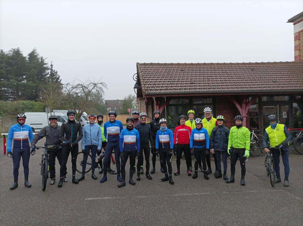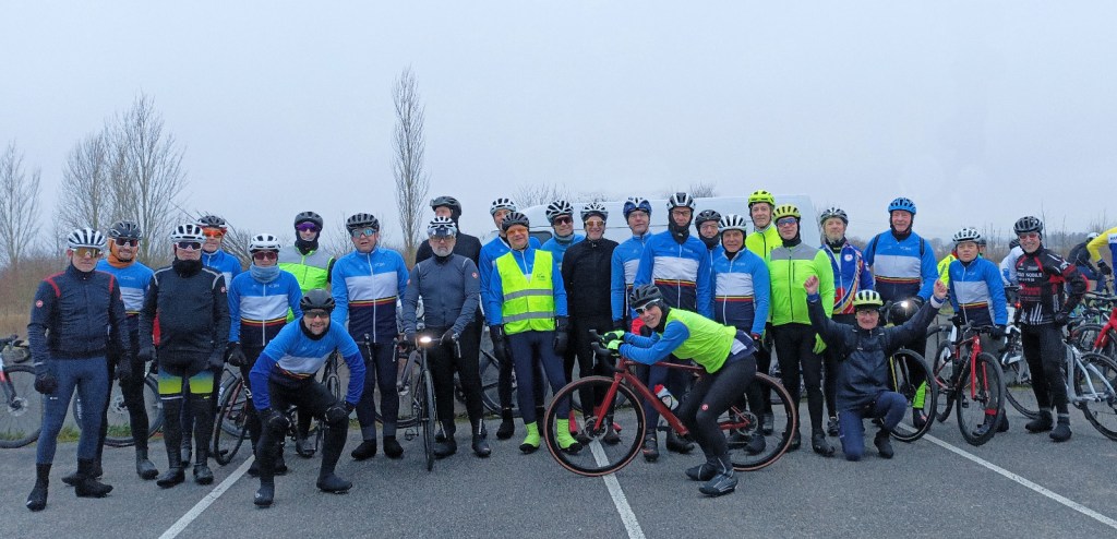 Un gros départ ce matin. 29 sur la photo. Avec un selfie du photographe et la bienvenue à Tanguy, fils de François P. Les Côte Rôtie se sont retrouvés à 12, avec le renfort de Frédéric P et Aurélien C, transfuges du groupe 2.