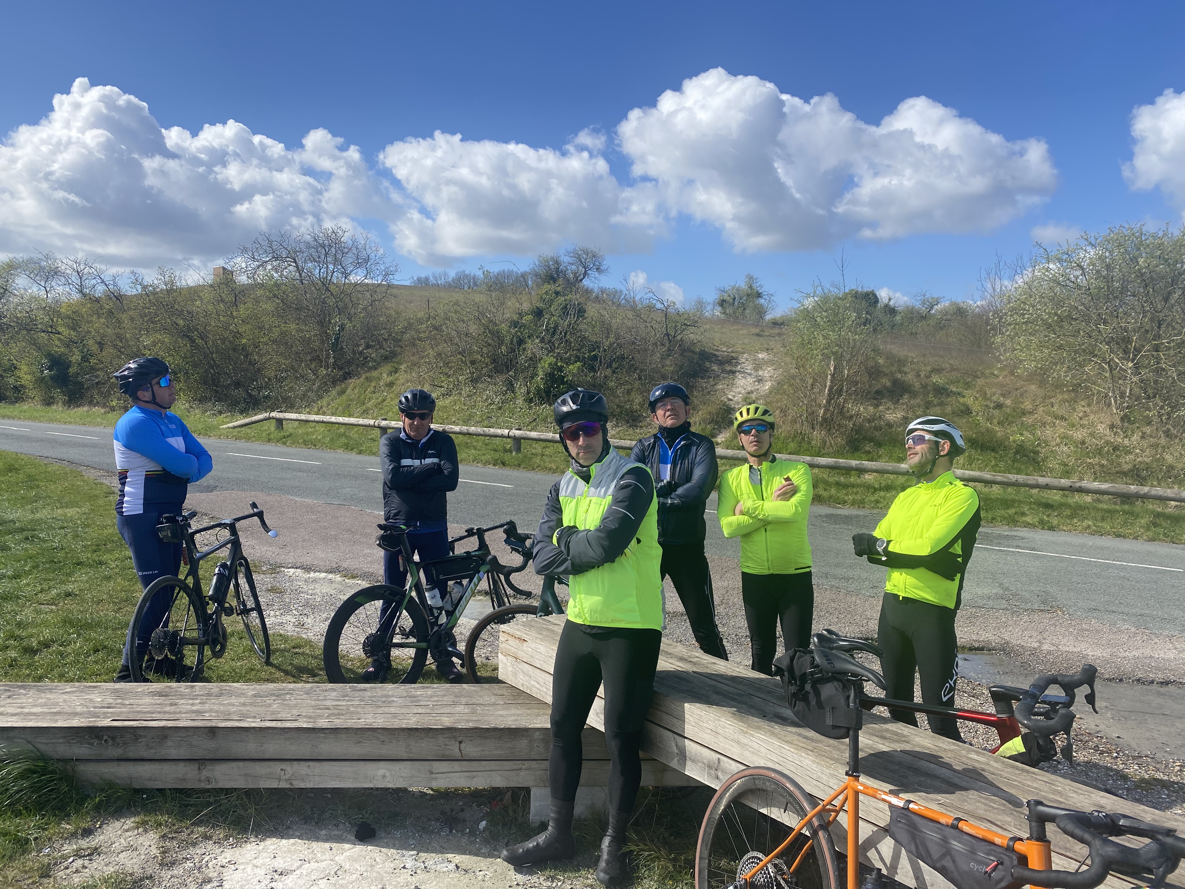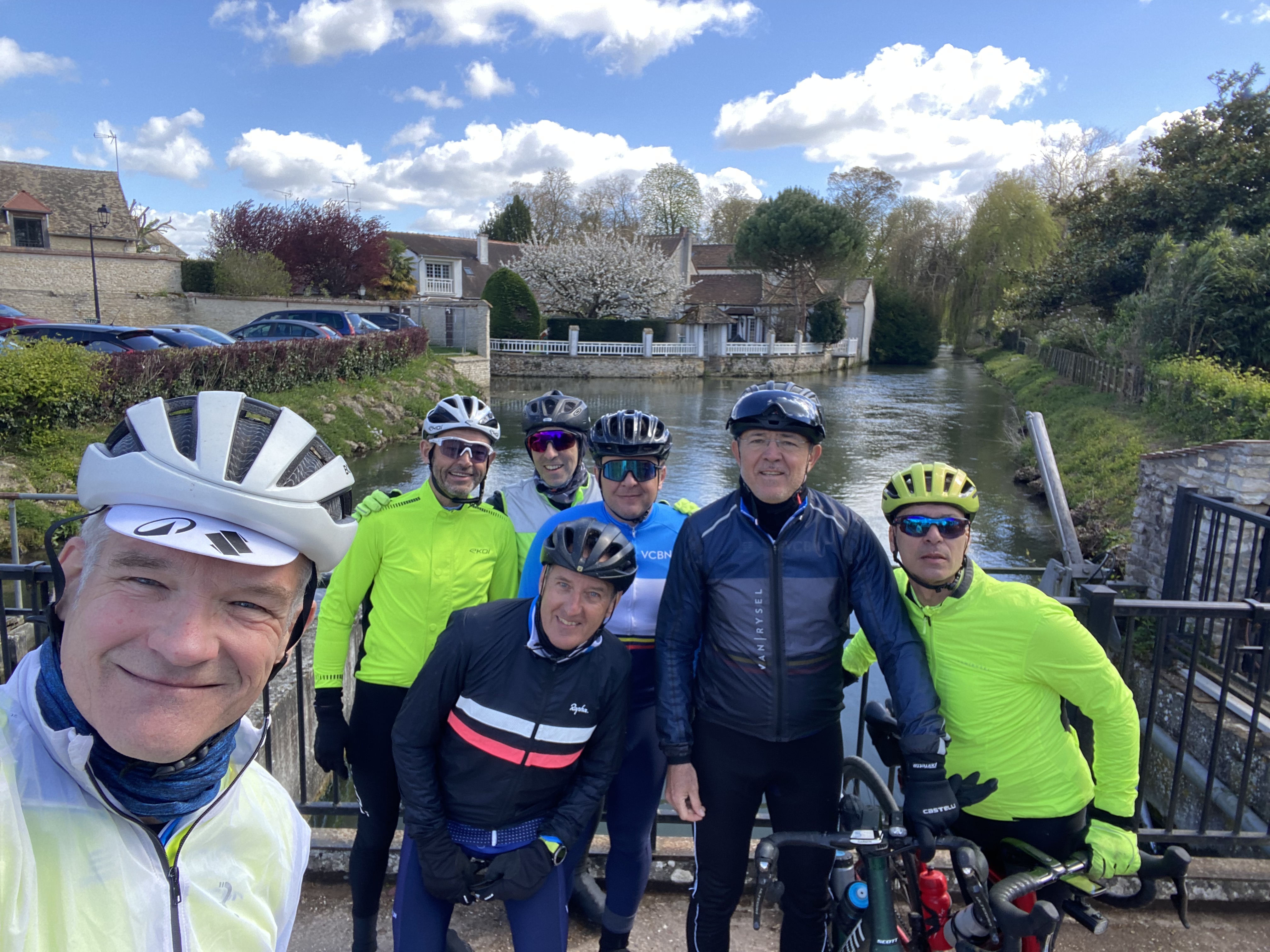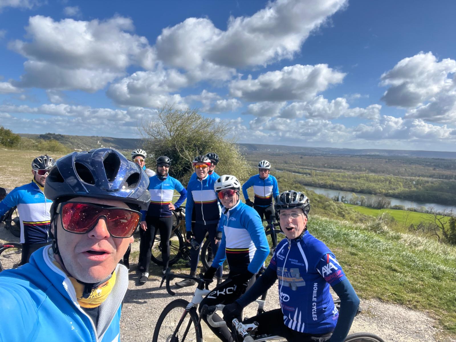Un gros départ ce matin. 29 sur la photo. Avec un selfie du photographe et la bienvenue à Tanguy, fils de François P. Les Côte Rôtie se sont retrouvés à 12, avec le renfort de Frédéric P et Aurélien C, transfuges du groupe 2.